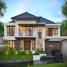 Berikut adalah elemen-elemen utama dari desain rumah mewah tropis dua lantai: